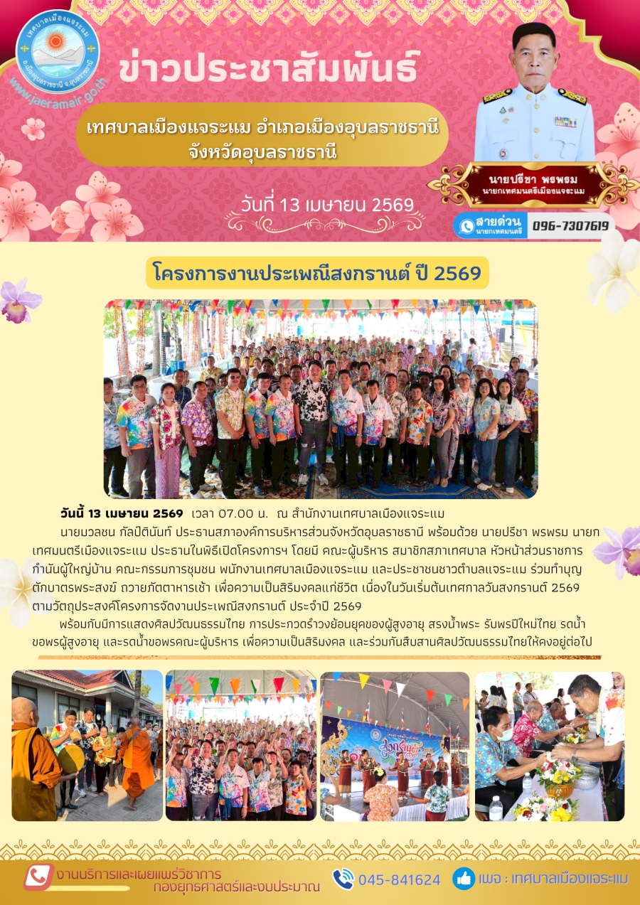 โครงการงานประเพณีสงกรานต์ ปี 2569 เทศบาลเมืองแจระแม
